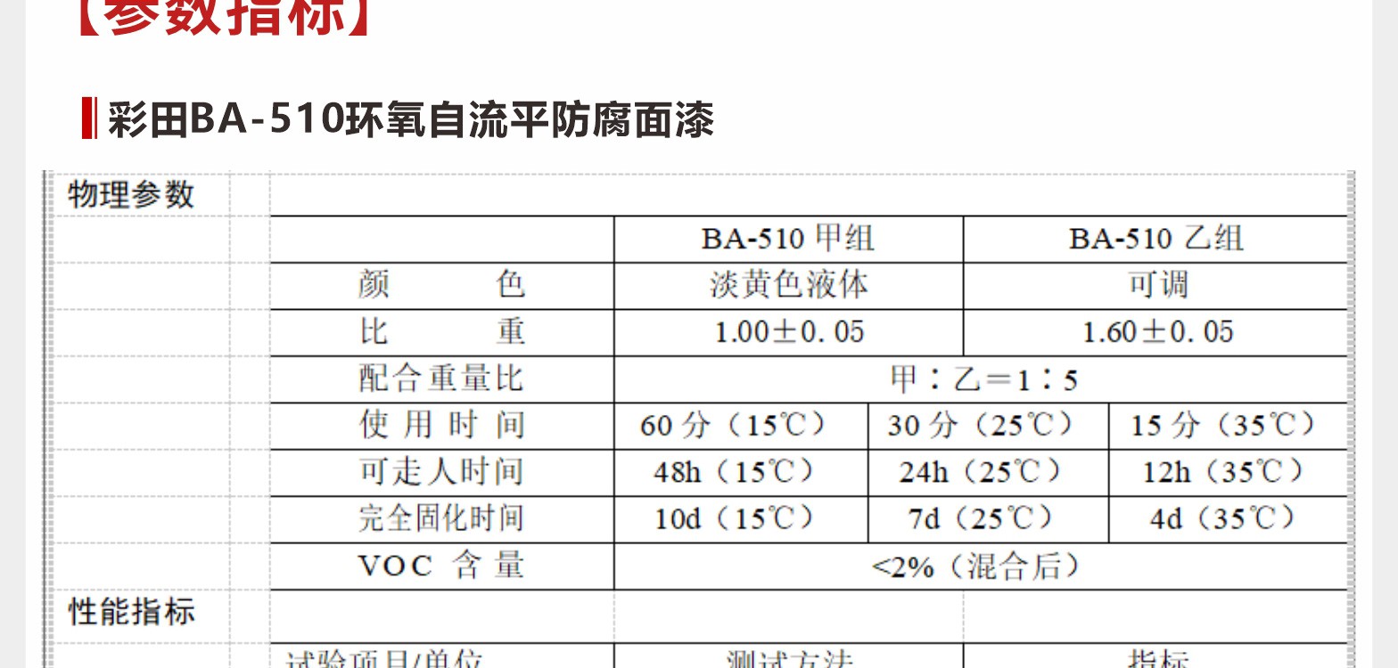 彩田BA-510環氧自流平防腐面漆