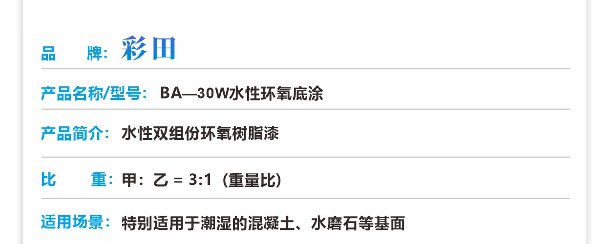 彩田BA-30W水性環氧底涂