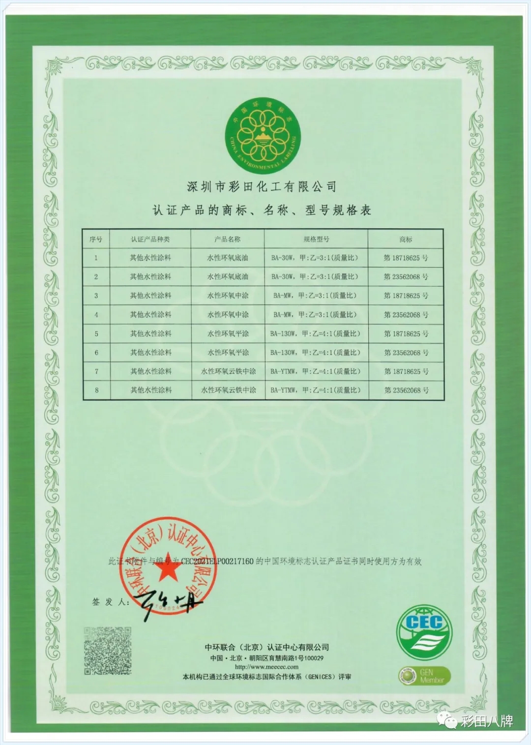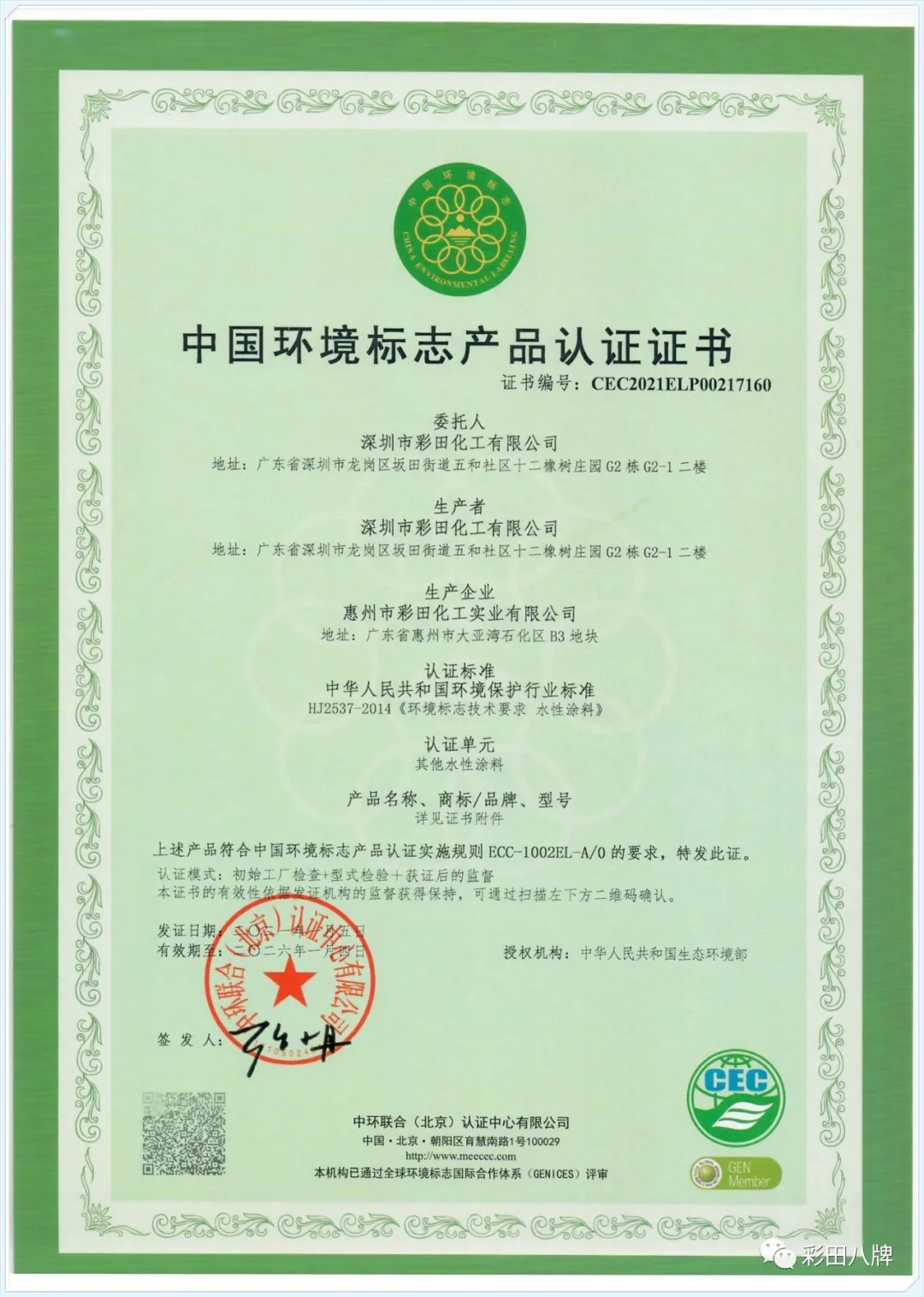 彩田一直以環(huán)保可續(xù)持發(fā)展為己任,大力推廣水性涂料,節(jié)約大量能源,大量降低對環(huán)境的污染。目前,彩田已獲得中華人民共和國生態(tài)環(huán)境部頒發(fā)的中國環(huán)境標(biāo)志產(chǎn)品認證證書(十環(huán)認證),是目前地坪行業(yè)唯一獲得此認證的企業(yè)!