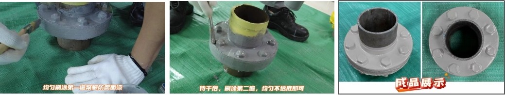 彈體防腐膏擠壓進接駁口或者沿著法蘭壁面刮平;