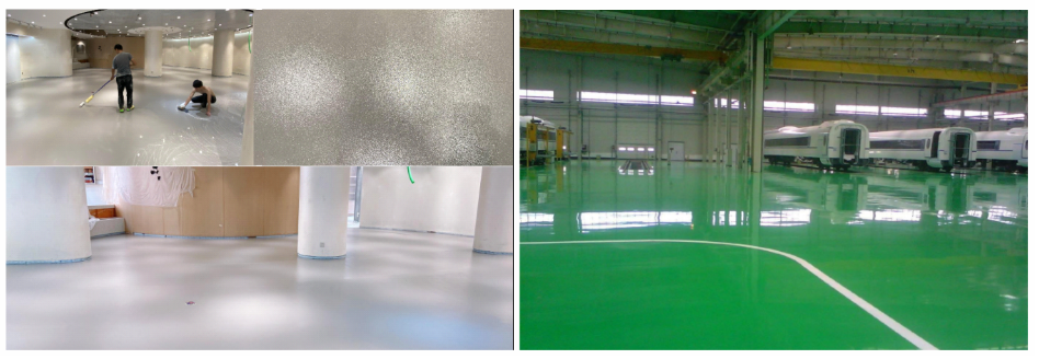 2、封閉底涂施工:涂刷彩田? BA-30W環氧底油,使其充分滲入地面,達到表面成膜,要求均勻無遺漏;