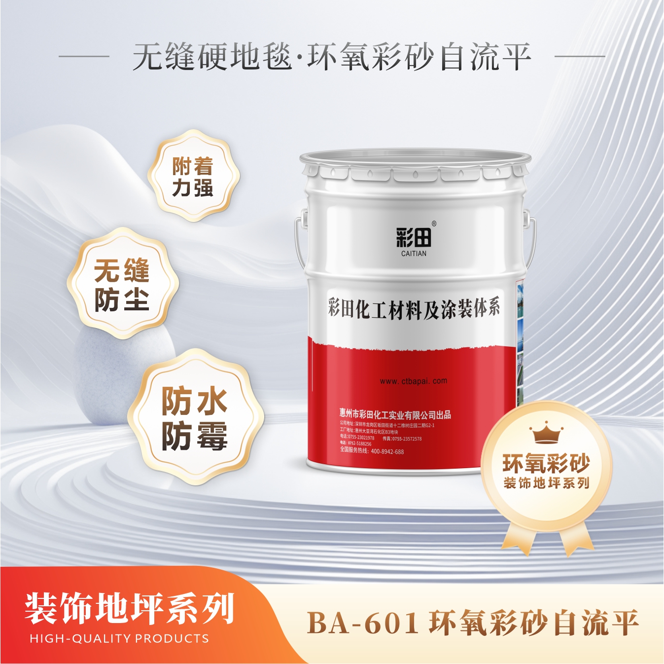 彩田BA-601是一種無溶劑三組份自流平環氧樹脂地坪涂料。