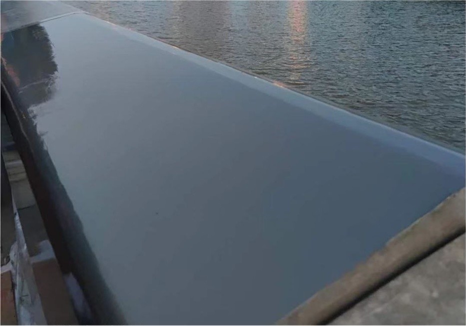 (4)光潔度高,可呈現鏡面效果,憎水性和耐沾污性,可以有效減少水流中砂石和藻類的粘附,起到減阻降糙的作用。